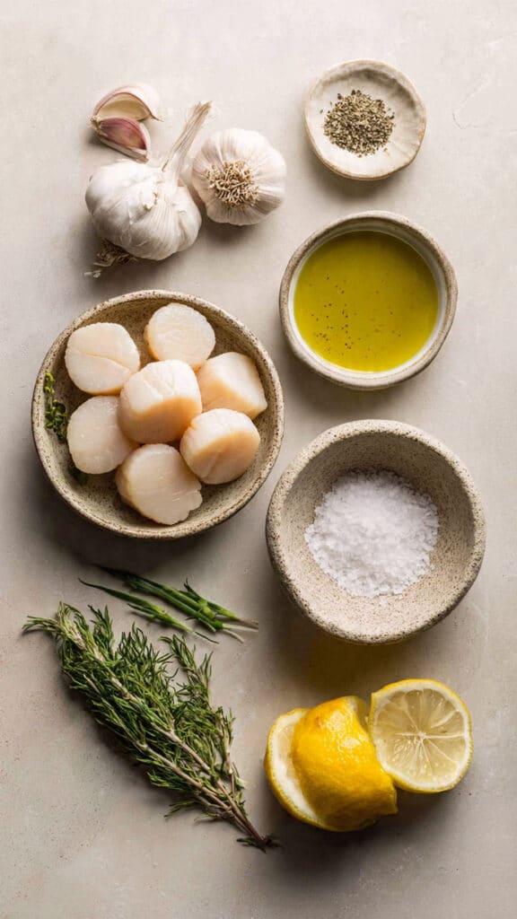 - Salt: To taste. Enhances the natural sweetness of scallops.