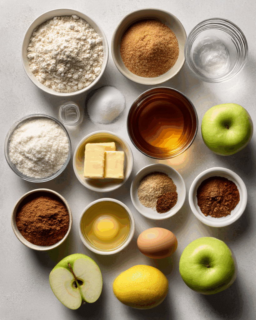 - Granny Smith Apples: 6 medium, peeled and thinly sliced. Tart and sturdy for baking.