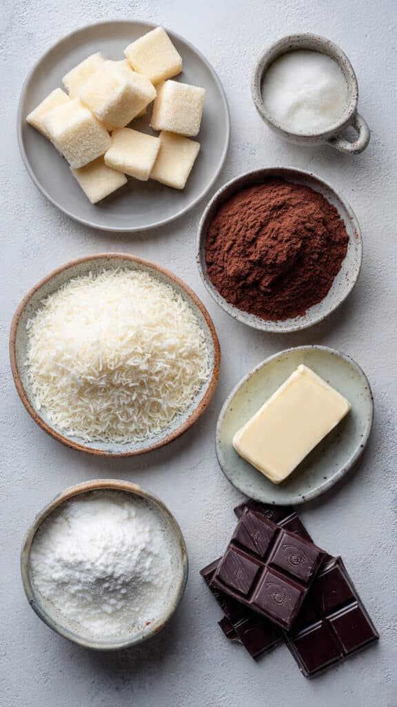 - Desiccated Coconut: 1 cup, brings texture and subtle sweetness.