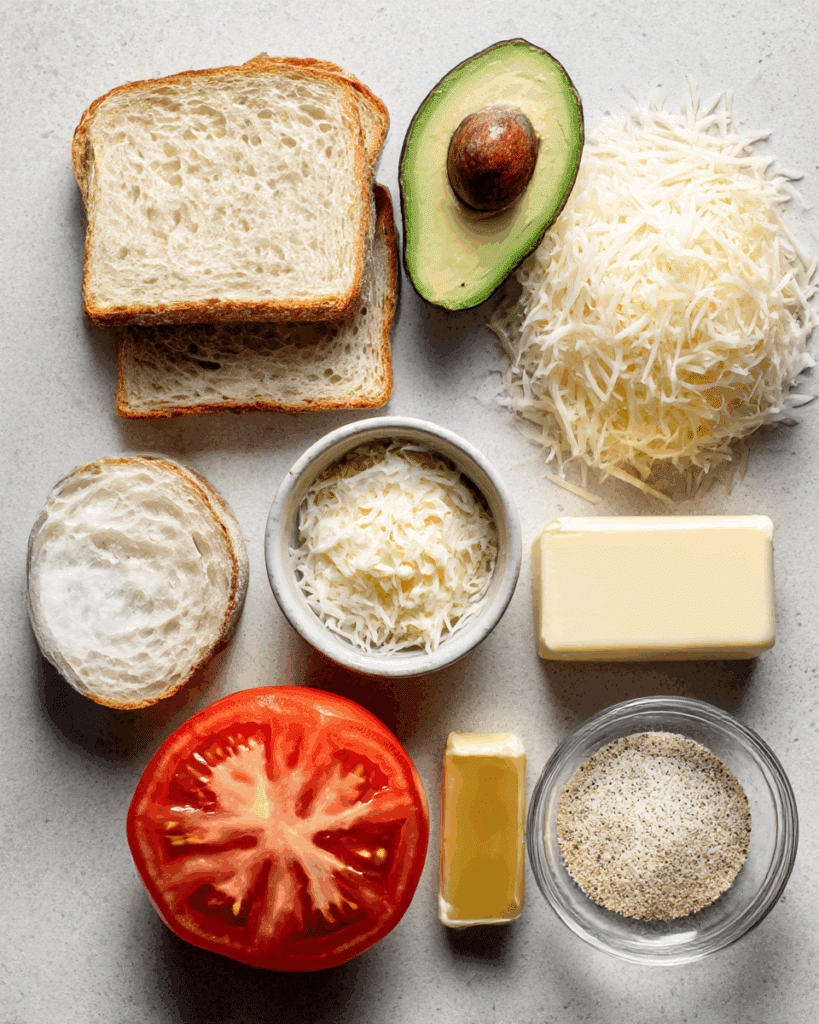 This sandwich is all about contrast. The bread gives you that satisfying crunch, while the inside is melty, creamy, and bright. The cheese stretches as you pull it apart, and the avocado and tomato offer cool, buttery freshness to balance the richness. A little garlic powder on the outside turns up the savory goodness in every bite.