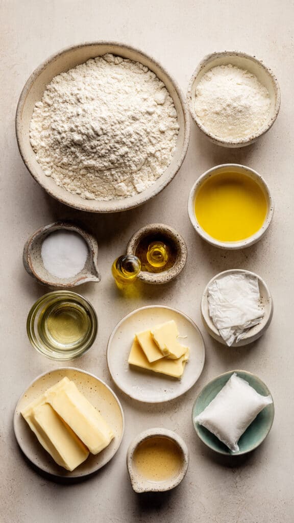 - Olive Oil: 1 tablespoon. Helps keep the dough moist and soft during proofing.