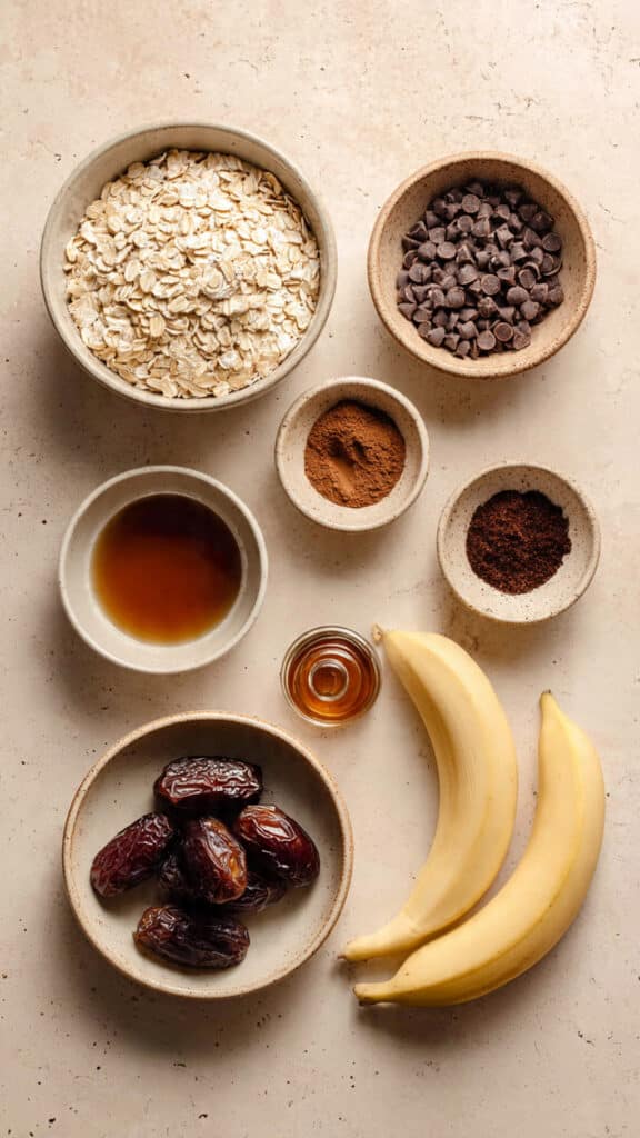 - Combine Ingredients: Mash bananas in a large bowl, then mix in oats, chopped dates, chocolate chips, cinnamon, vanilla, and honey.