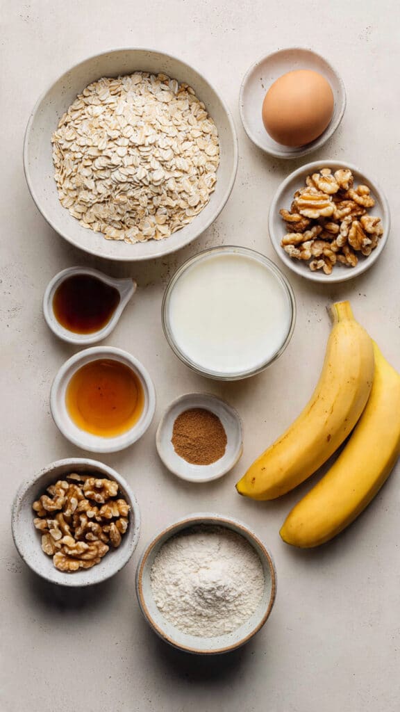 Ingredients in Banana Oat Pancakes with Walnuts