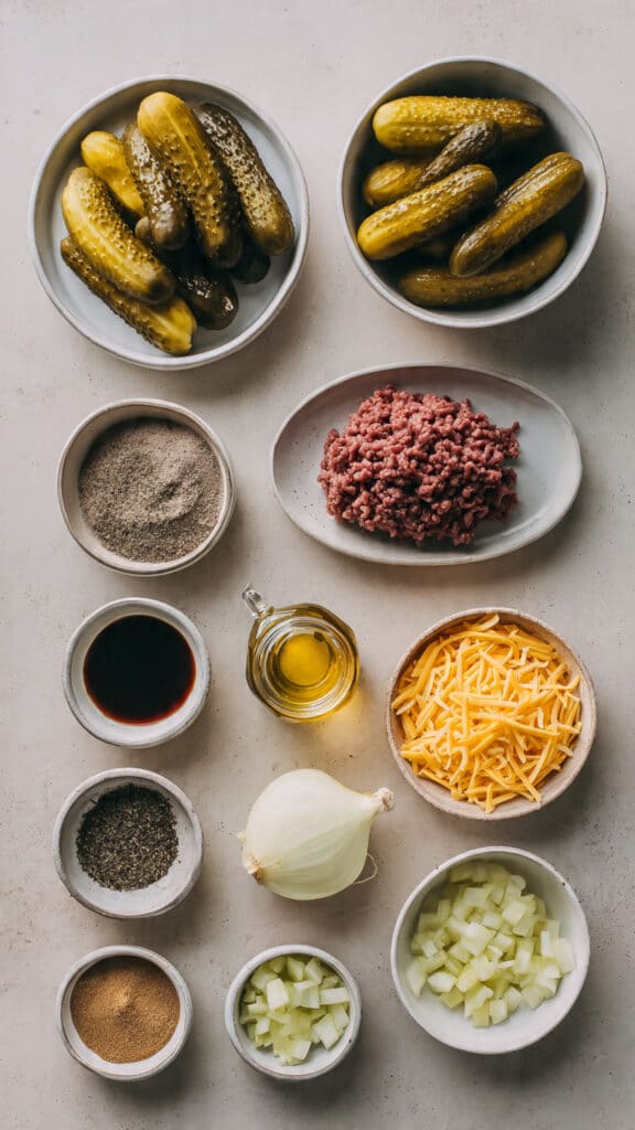 Want to get ahead? Cook the beef mixture and prep the pickles up to 2 days in advance. Store them separately in airtight containers. After assembling, they’ll keep in the fridge for up to 3 days. Reheat in the oven or air fryer for best texture. Not ideal for freezing since pickles lose crunch.