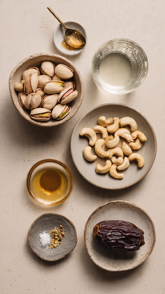 - Pistachios: 1 cup, soaked for 2 hours—adds a rich, earthy flavor and beautiful color.