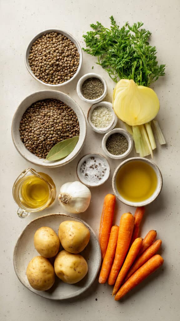 Dried Brown Lentils: They cook evenly and maintain structure, giving the soup substance without turning mushy.
