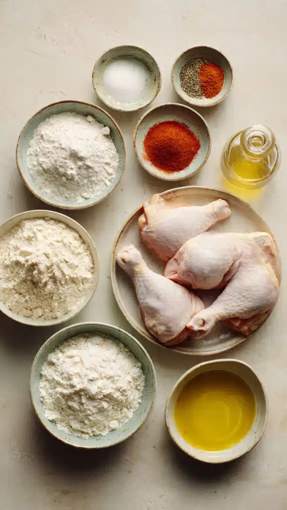- Olive Oil: About 4 cups for frying, enough to submerge chicken halfway.