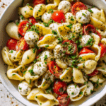 The Caprese salad originated on the island of Capri, off the coast of Naples, Italy. It was designed to represent the colors of the Italian flag — red tomatoes, white mozzarella, and green basil. Over time, chefs began adapting the concept into sandwiches, skewers, and yes, even pasta salads. Combining it with pasta turns a traditional appetizer into a satisfying dish that can be served chilled or at room temperature — perfect for warm weather dining.