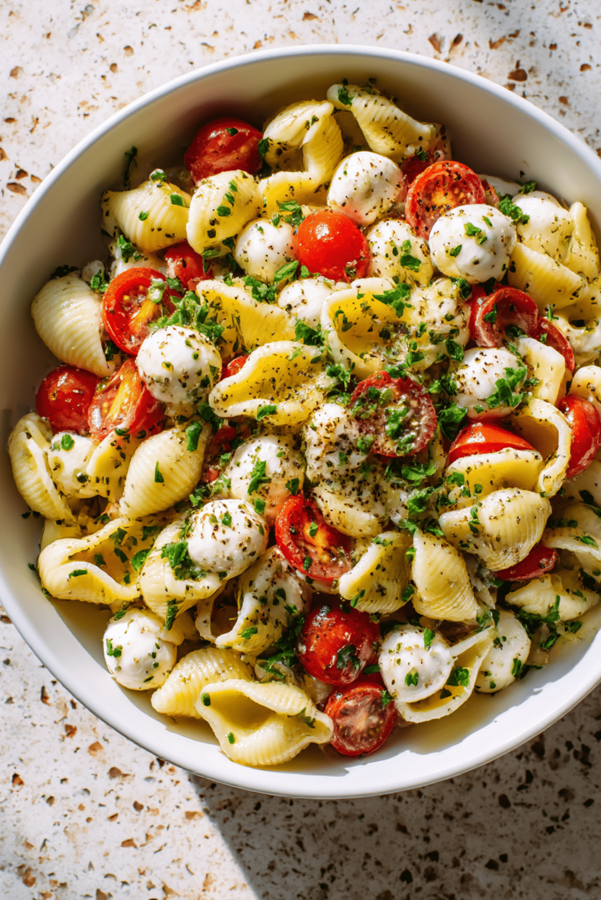 A fresh and vibrant Caprese Pasta Salad made with tender shell pasta, juicy cherry tomatoes, creamy mozzarella balls, and fragrant basil. Tossed in olive oil and balsamic vinegar, it’s the perfect light dish for any summer occasion.