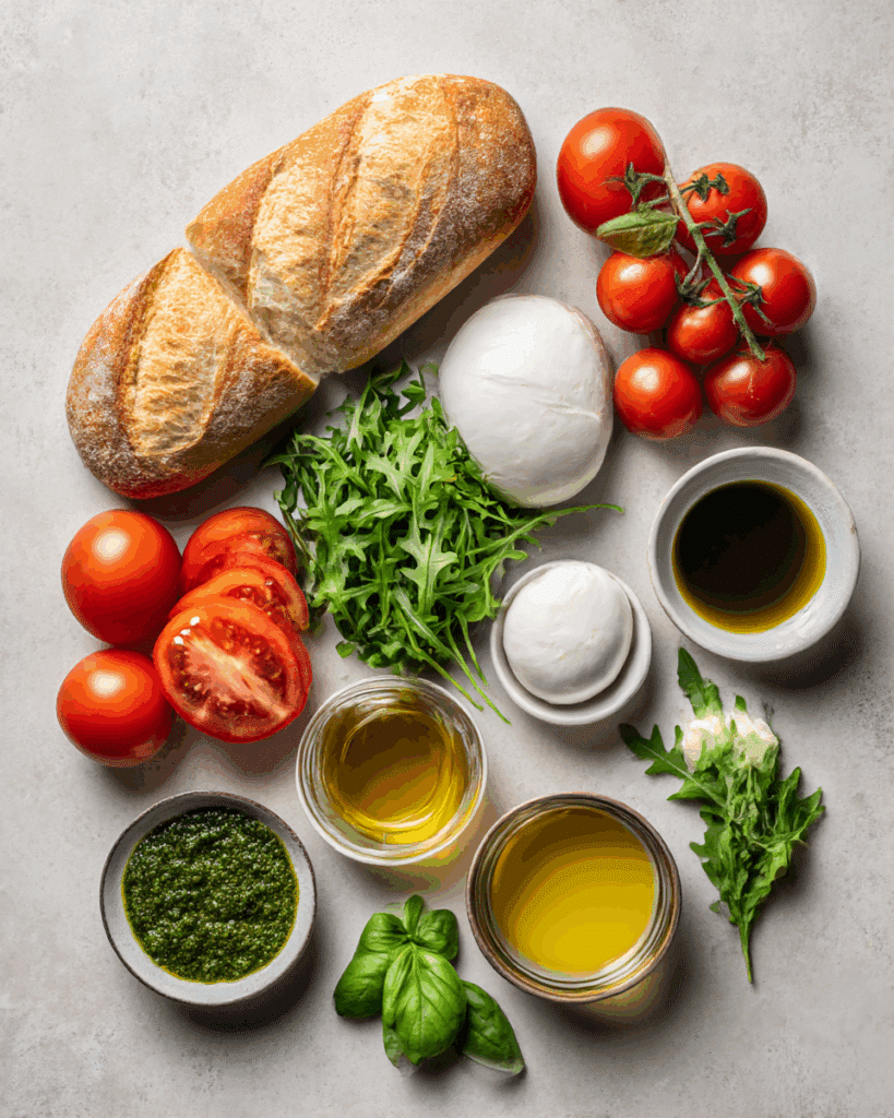 A perfect Caprese sandwich is all about harmony. The ciabatta is crisp outside and airy inside, the tomatoes are juicy and sweet, the mozzarella is smooth and creamy, and the pesto brings richness and brightness. The contrast between crunchy bread and tender fillings is the highlight.
