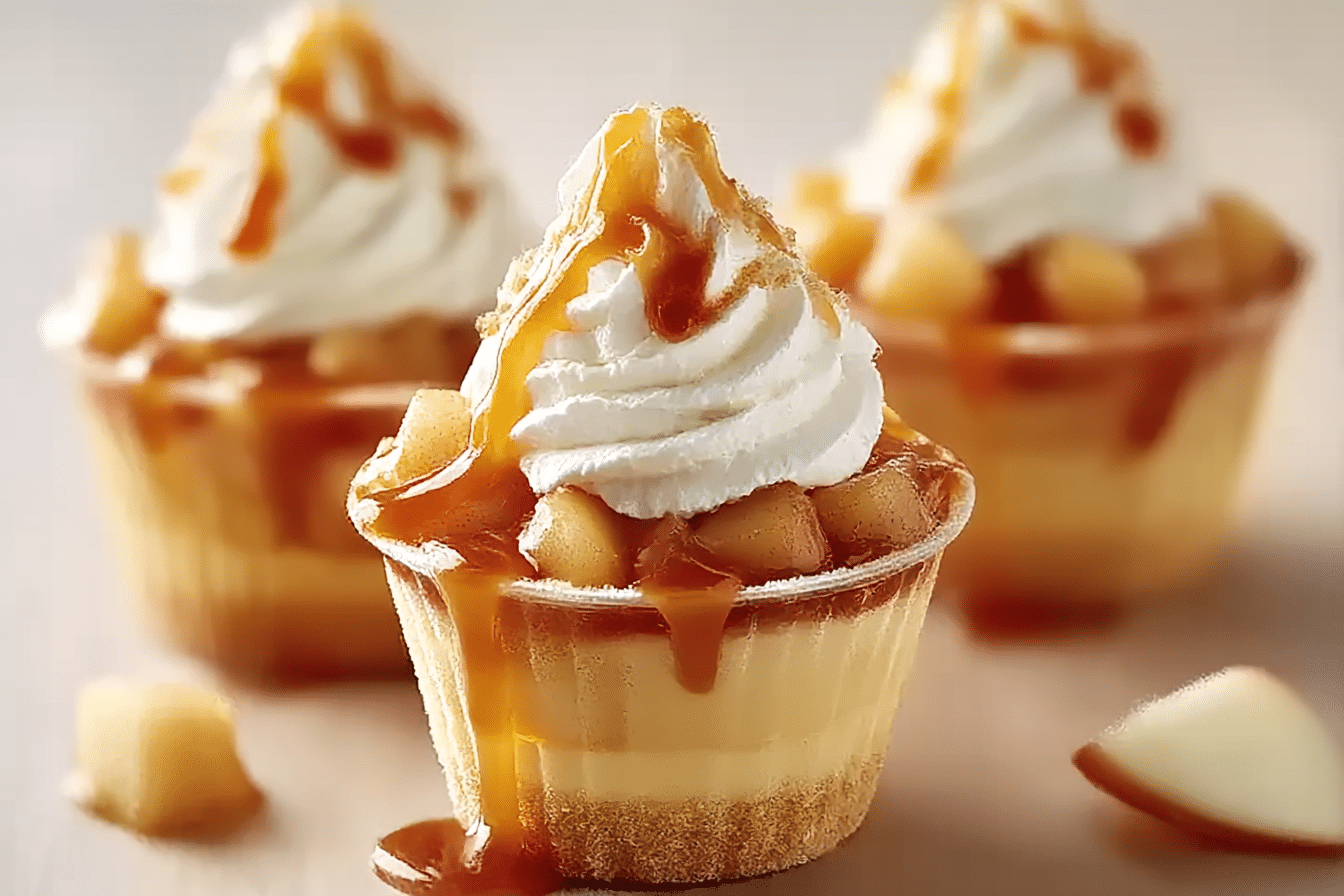 Deliciously layered dessert cups filled with spiced apples, buttery caramel, creamy topping, and a crunchy base. A cozy fall treat that’s perfect for gatherings or weeknight indulgence.