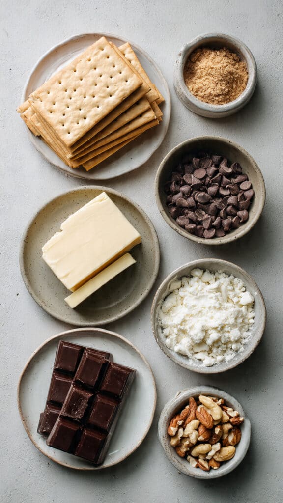 This dessert is all about contrast. The crackers bake into a lightly toasted, crisp foundation. The caramel seeps into every little gap, creating a chewy, buttery layer. Then comes the chocolate, smooth and rich, melting into a glossy topping that locks everything in place. Add chopped candy pieces and nuts on top, and suddenly you have texture in every bite.