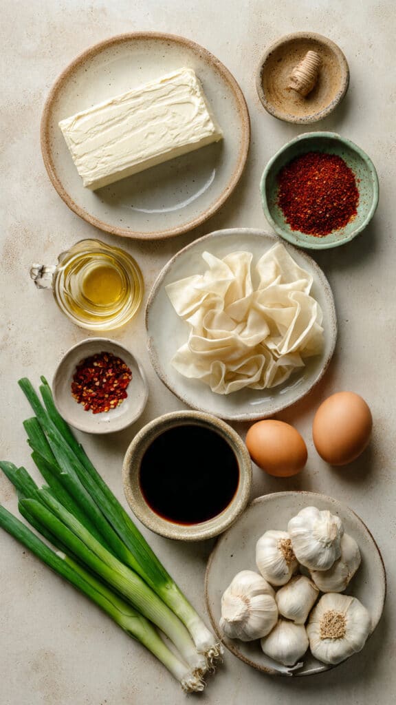 The filling is simple yet flavorful, with cream cheese made savory by garlic and green onions. Then comes the sauce, layered with honey, ginger, chili flakes, and soy sauce. This one’s a total game-changer for gatherings because it feels restaurant quality, yet you can easily make it at home.