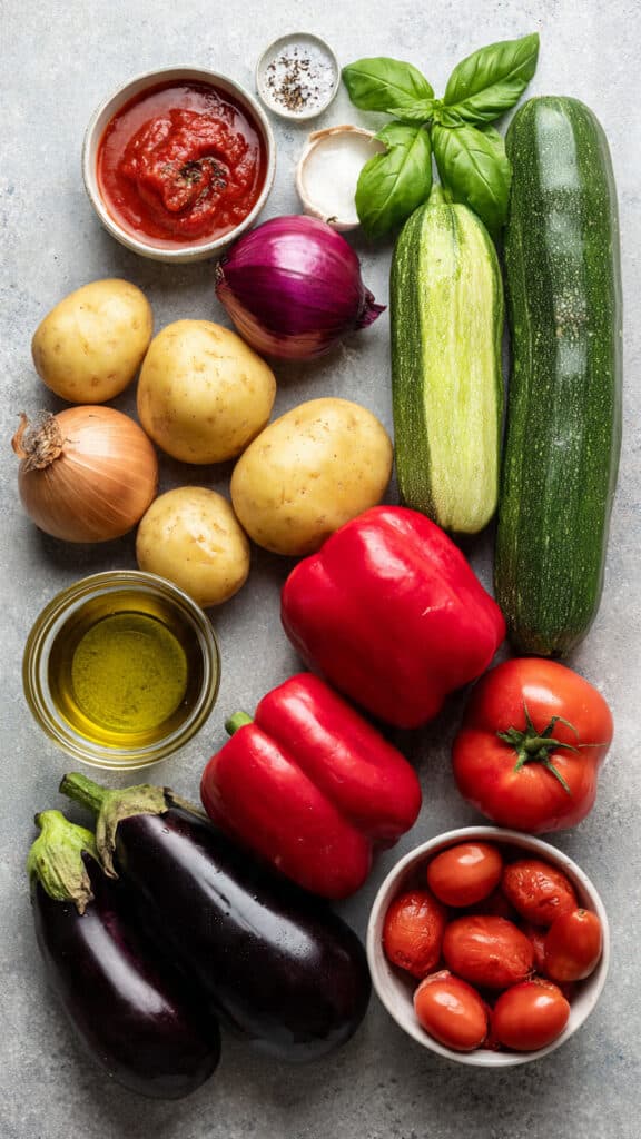 The beauty of ciambotta lies in its balance. The potatoes add creamy heft, while eggplant melts into the sauce. Zucchini stays tender, bell peppers add sweetness, and the tomatoes bring bright acidity. The olive oil ties everything together with a luxurious richness that makes each bite feel indulgent.