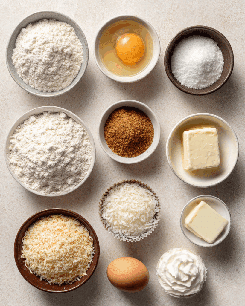 - Combine Ingredients: Whisk flour, baking soda, and salt. In another bowl, cream butter, granulated sugar, and brown sugar. Beat in egg and vanilla. Stir in dry ingredients and ½ cup shredded coconut.
