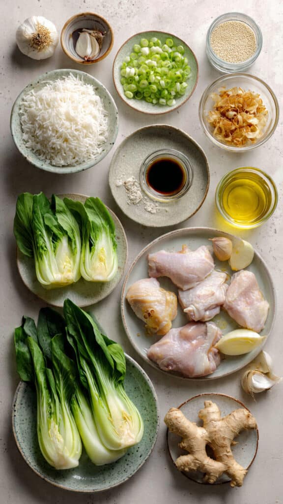 Ingredients in Coconut Miso Rice Bowl with Honey-Glazed Soy Chicken