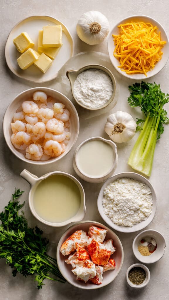 - Cooked Lobster Meat: ½ pound, chopped. Adds sweetness and luxury.