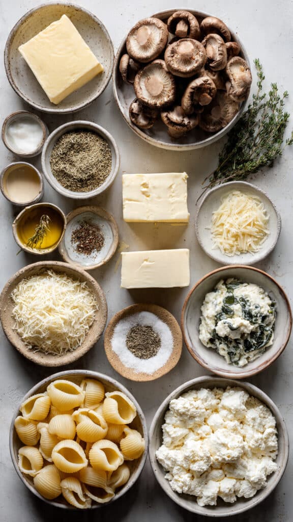 Ingredients in Creamy White Wine Mushroom Stuffed Shells