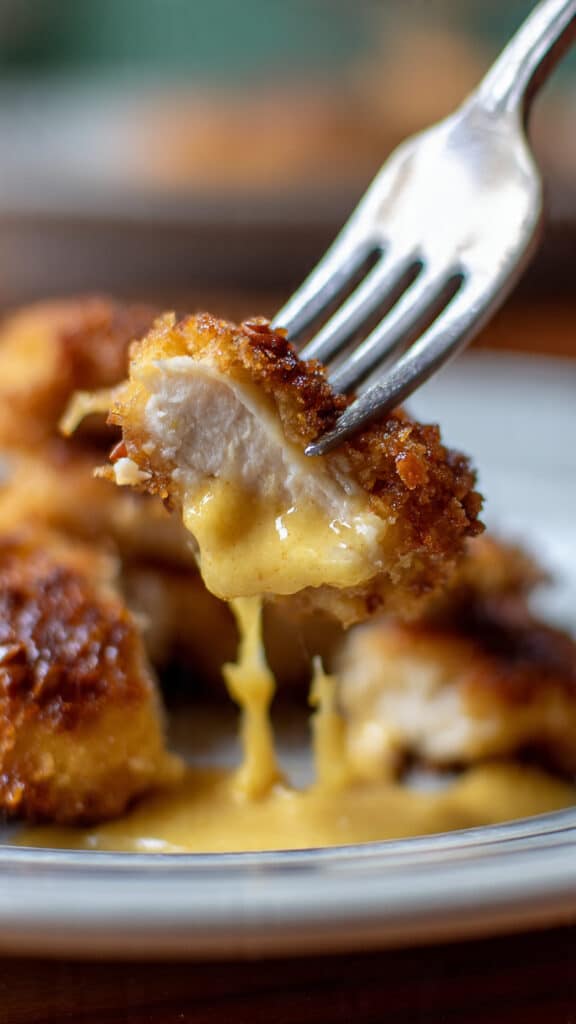 You get juicy, tender chicken inside with a thick, shatteringly crisp pretzel crust. The sauce brings a velvety contrast with tangy mustard, creamy cheddar, and a hint of umami from the Worcestershire. It’s bold, cheesy, crunchy, and comforting all at once.