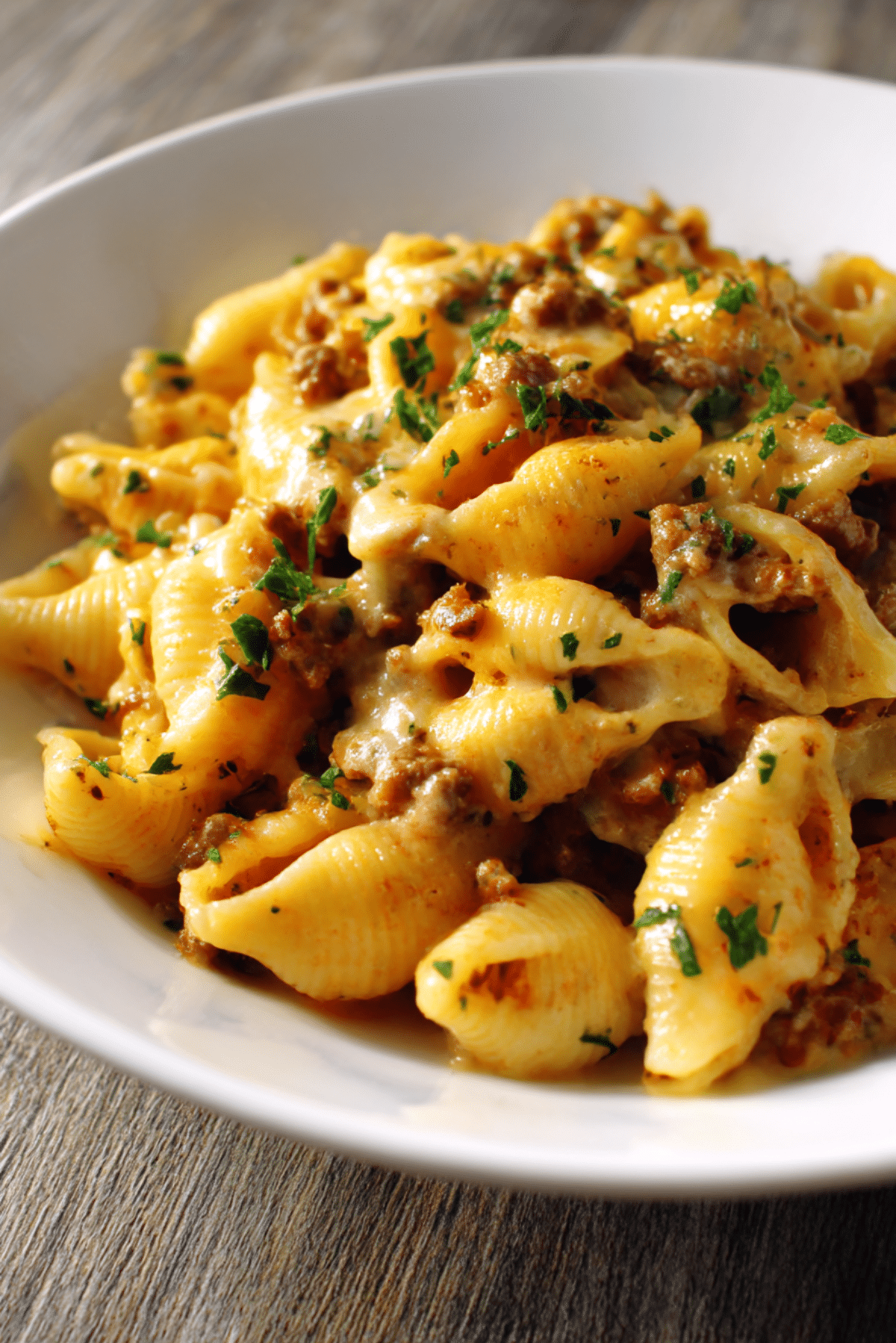Tender shell pasta smothered in a creamy, cheesy ranch sauce with hearty ground beef, all slow-cooked to perfection in the crockpot. A family-friendly comfort food favorite!