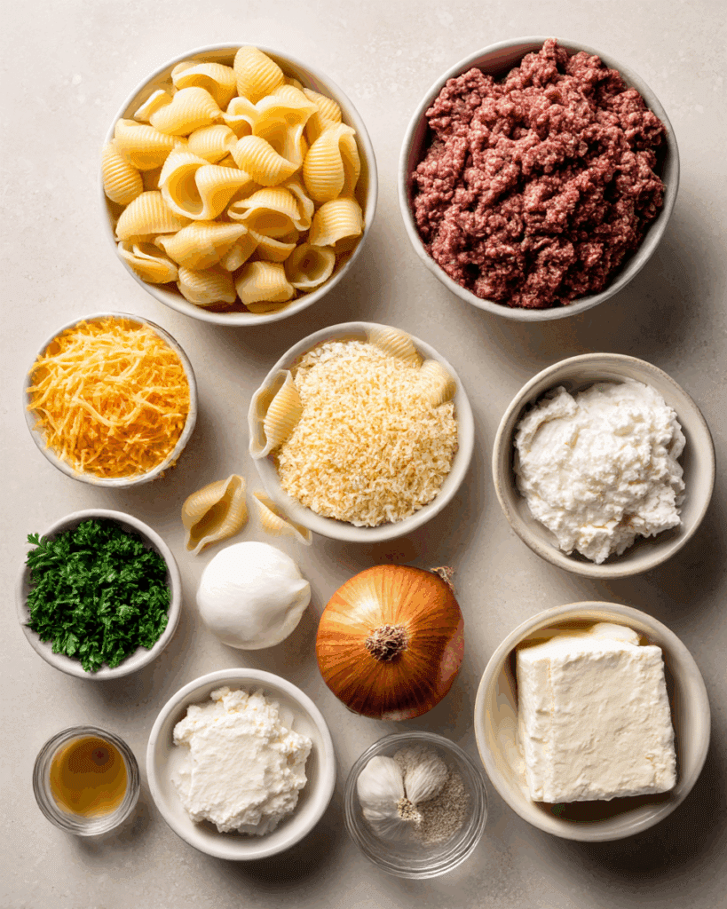 Each shell soaks up the creamy, ranch-flavored sauce, giving you soft pasta with pockets of melted cheese and perfectly seasoned beef in every bite. The richness of the cheese balances the savory beef while the tangy ranch lifts the flavor, keeping it from feeling too heavy.