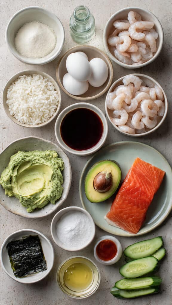 Easy Sushi Sandwiches are a no-roll twist on traditional sushi, layered with seasoned rice, crispy shrimp, creamy avocado, crab, smoked salmon, and fresh vegetables—all wrapped in nori for a convenient, flavorful bite. Perfect for parties, lunchboxes, or sushi nights at home.