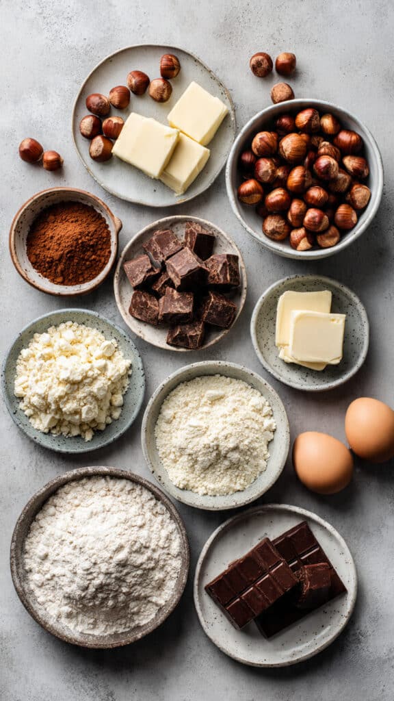 - Hazelnuts: 1/2 cup, chopped. Hazelnuts add a wonderful crunch and complement the chocolate perfectly.
