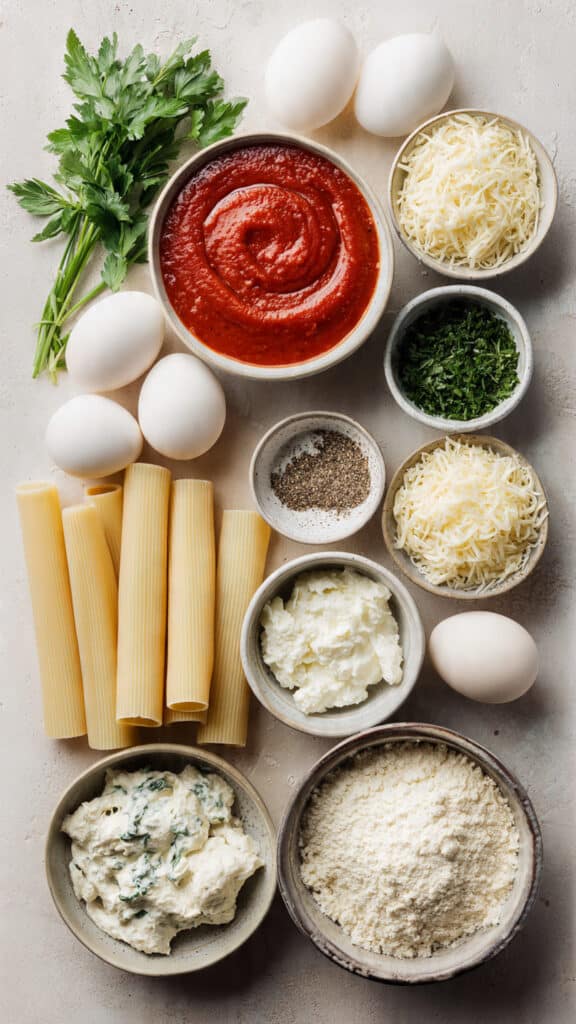 It may look fancy, but making manicotti is straightforward and super satisfying. Let’s go step by step.