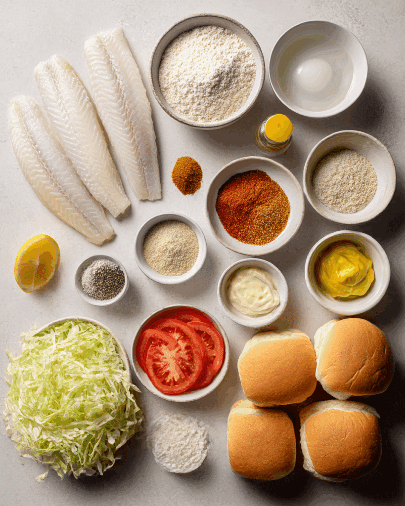 - Assemble: Spread sauce on buns, add cabbage, top with fried fish, more sauce if desired, and finish with top bun.