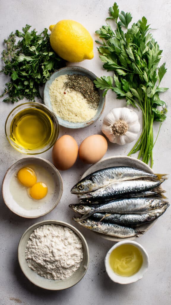 - Eggs: 2 large, beaten. Helps breadcrumbs adhere to sardines.