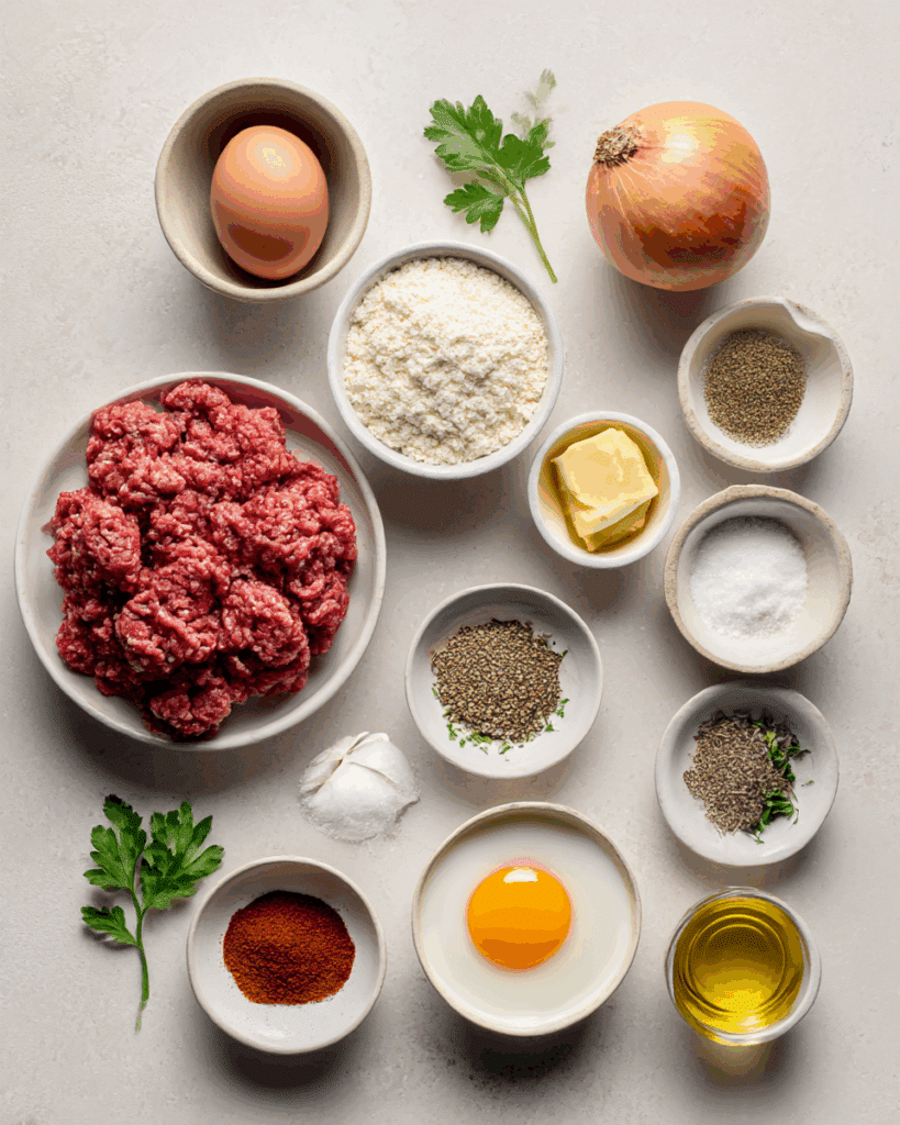 The ingredients in Frikadellen are a perfect harmony of savory simplicity. Each one has a role, contributing to the flavor, moisture, or structure of these tender patties.