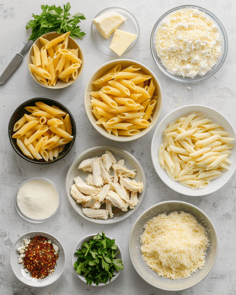 Ingredients in Garlic Parmesan Chicken Pasta Bake