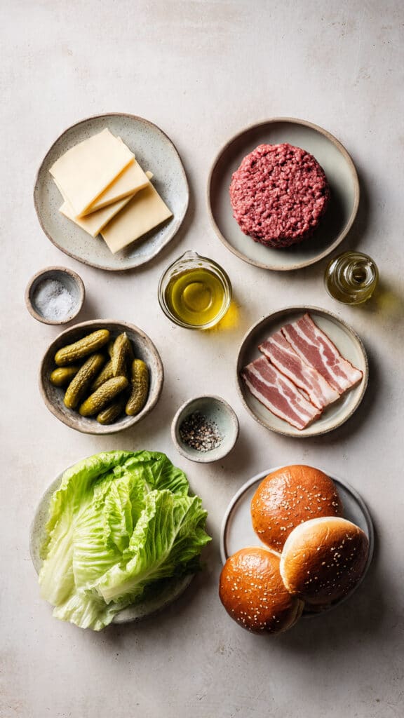 - Burger Buns: 4 large buns, lightly toasted for structure and softness.