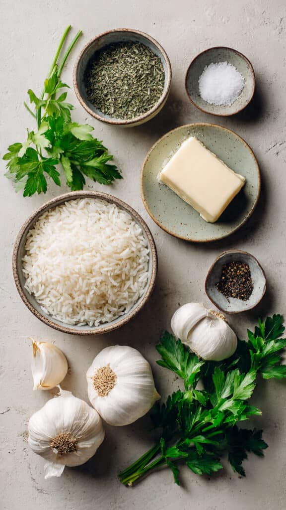 Fluffy white rice gently cooked with garlic, butter, and herbs, creating a simple yet flavorful side dish that pairs beautifully with almost any meal.