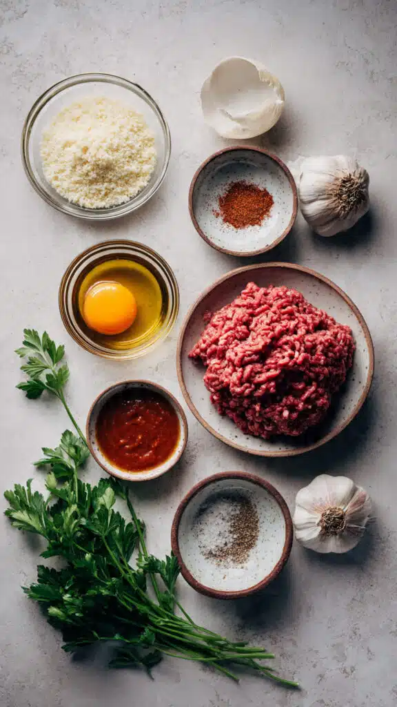 - Combine Ingredients: In a large mixing bowl, combine ground beef, breadcrumbs, egg, minced garlic, onion powder, salt, and black pepper. Mix gently until just combined.