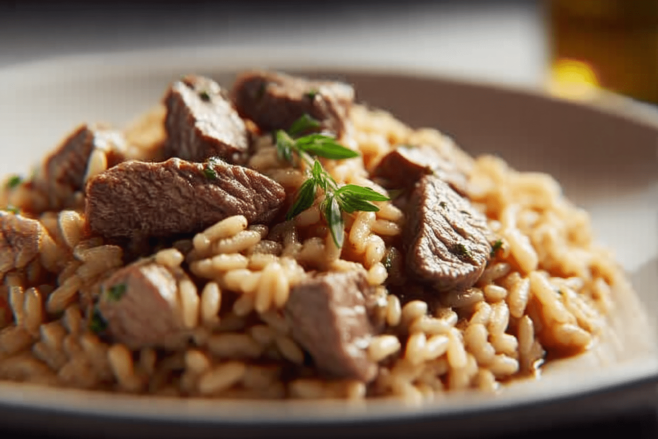 There’s a kind of magic that happens when tender beef meets the creamy richness of perfectly cooked risotto. It’s comfort food that feels elegant, rustic yet refined, hearty yet sophisticated. This Italian Beef Risotto captures all of that and more—rich beefy flavor wrapped in velvety Arborio rice, slowly stirred to silky perfection. It’s the kind of dish you cook slowly, with love, glass of wine nearby, and good music playing in the background.