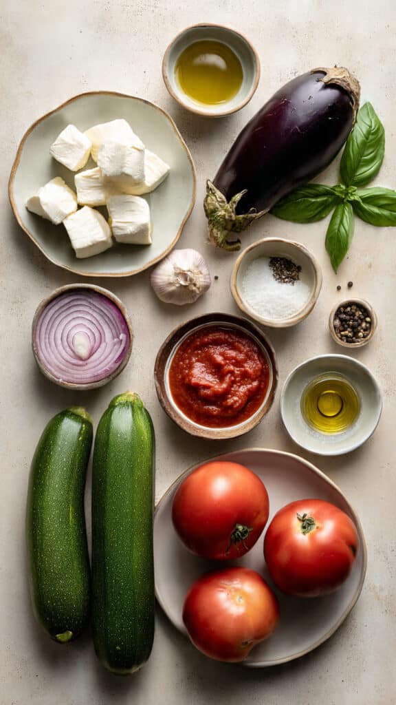 This dish is all about contrast. You get the soft bite of roasted zucchini, the creaminess of eggplant, the sweetness of tomatoes, and a little tang from red onion. The cheese melts between layers, adding a gooey surprise, while the sauce at the bottom bubbles up and brings it all together. It’s fresh, warm, and deeply comforting.