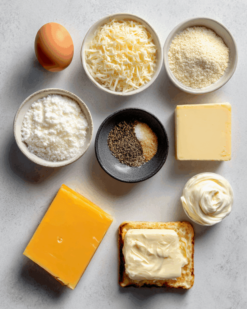- Shredded Mozzarella Cheese: 1/2 cup forms the base and adds meltiness.