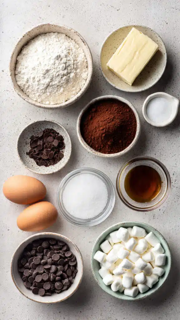 Mini Marshmallows: They melt into a soft, airy layer that contrasts beautifully with the dense brownie base. Slightly toasted edges add even more depth and sweetness.