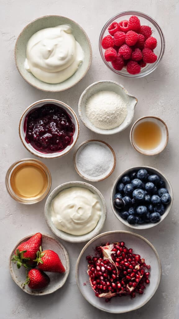 - Tropical Twist: Top with mango puree and passionfruit instead of berries.