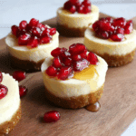 These cheesecakes are creamy but light, with a smooth filling that melts on your tongue. The graham cracker base adds a buttery crunch, while the pomegranate on top adds a juicy burst and a bit of tartness that cuts through the richness beautifully.