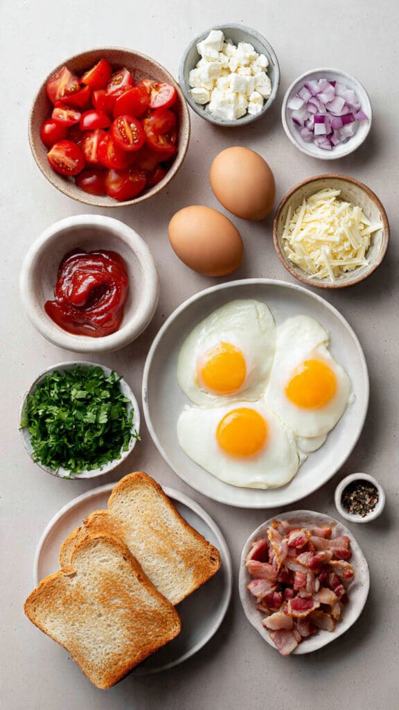 This recipe came to life on a quiet Sunday morning. I had day-old sourdough, a few eggs, and just enough ingredients to make something delicious. I wanted comfort, but I also wanted a little flair. With each layer, from the creamy scrambled eggs to the sharp bite of red onion and the nostalgic drizzle of ketchup, this toast transformed into something far more than the sum of its parts.