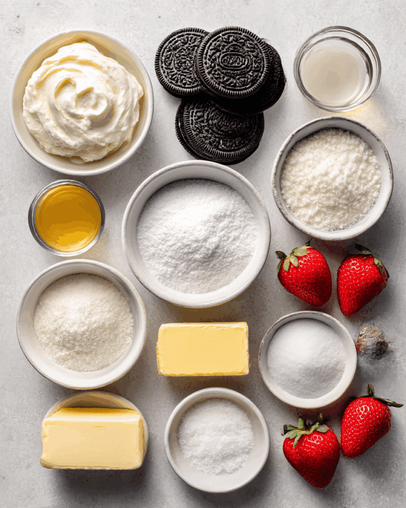 - Oreo Cookies: 24 cookies, crushed. Used for both the crust and the topping, they give the iconic cookies-and-cream flavor.