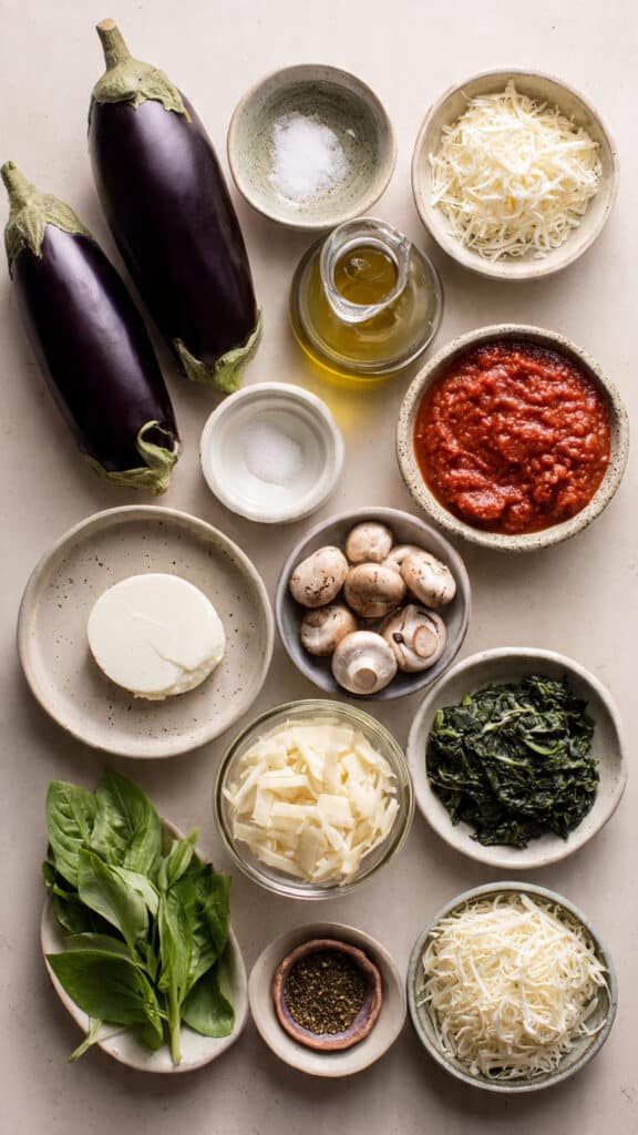 - Medium Eggplants: 3. Sliced lengthwise into planks, these replace the noodles and provide structure and flavor.