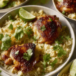 I remember a day when I craved something fresh, comforting, and quick. I had chicken thighs, a lime, and some leftover rice—or so I thought. Instead of doing everything separately, I tossed everything into one pan: browned the chicken, added aromatics, rice, broth, and let it cook until perfect. The result was unexpectedly amazing—moist chicken, fragrant rice, and that hit of citrus and cilantro. Now it’s a staple whenever I want big flavor with zero fuss.