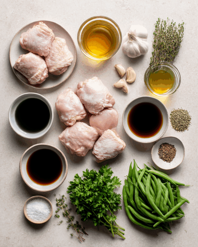 - Chicken Thighs (bone-in, skin-on): 4 pieces — Juicy and flavorful, perfect for pan-searing.