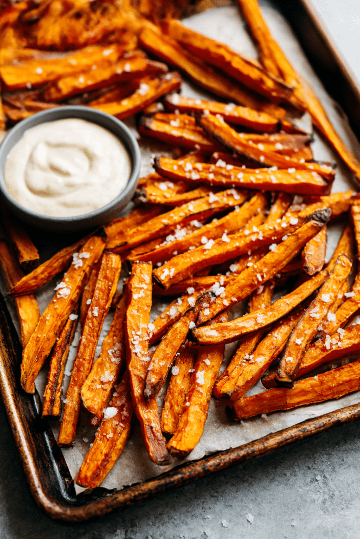 Sharp Knife and Cutting Board: For slicing the sweet potatoes into fries.