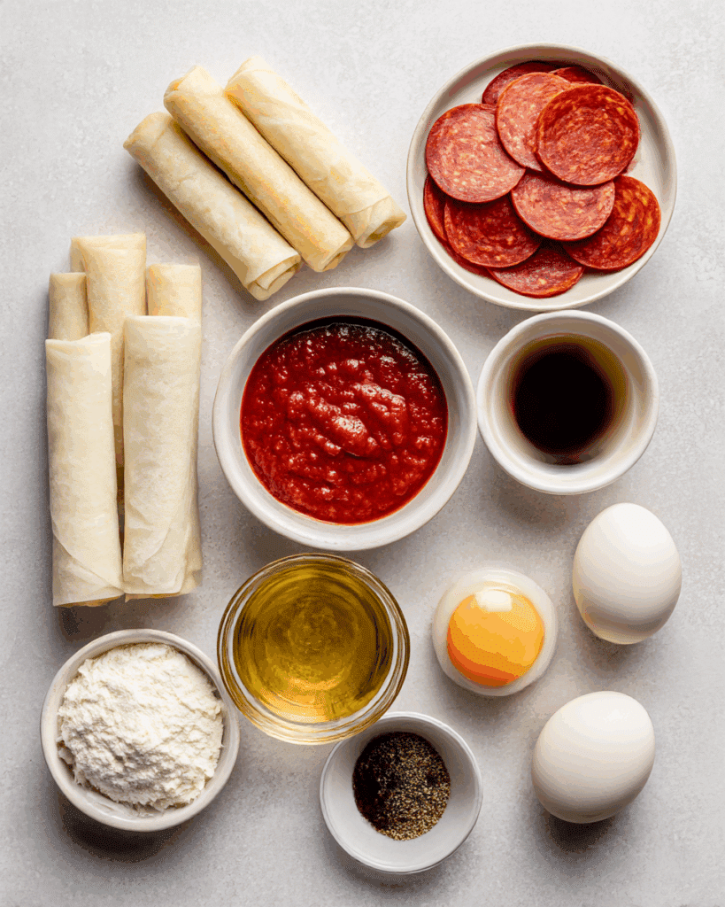 Egg Roll Wrappers: Pizza dough, wonton wrappers, or even tortillas work in a pinch.