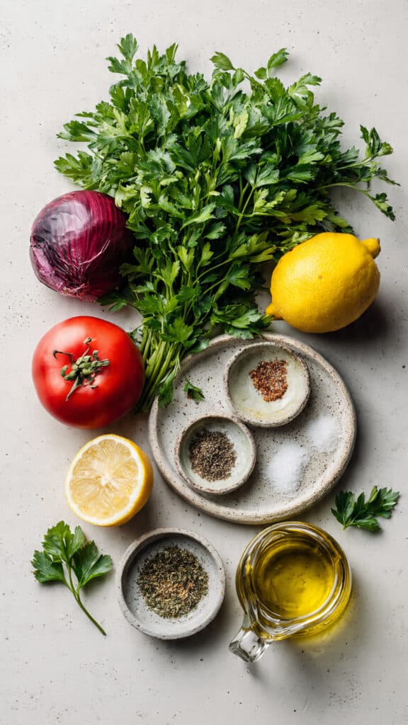 - Parsley: 1 bunch — Chopped finely to create the green base of the salad.