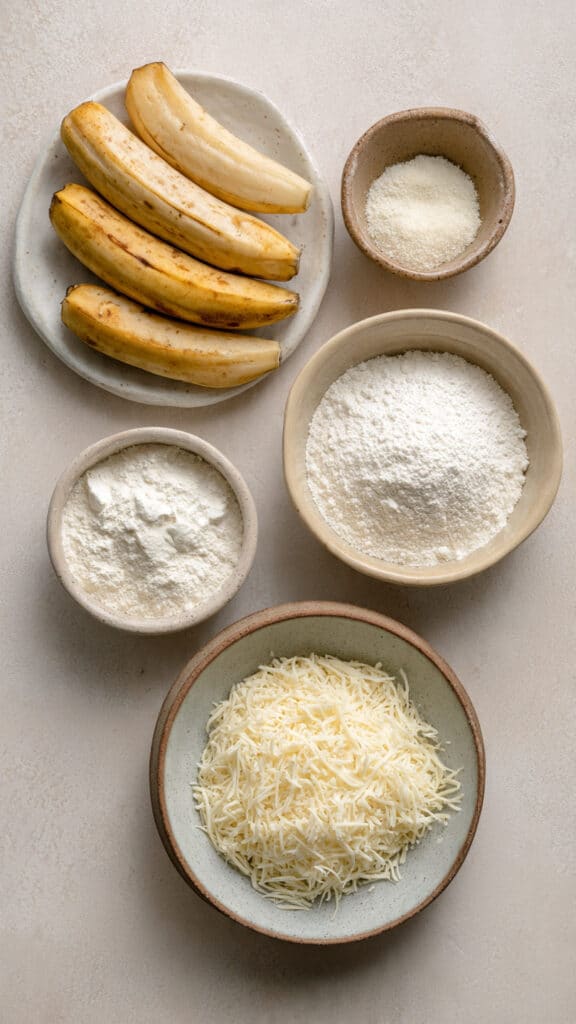 - Boiled Plantain: 240g, peeled and mashed. Forms the sweet, soft dough base.